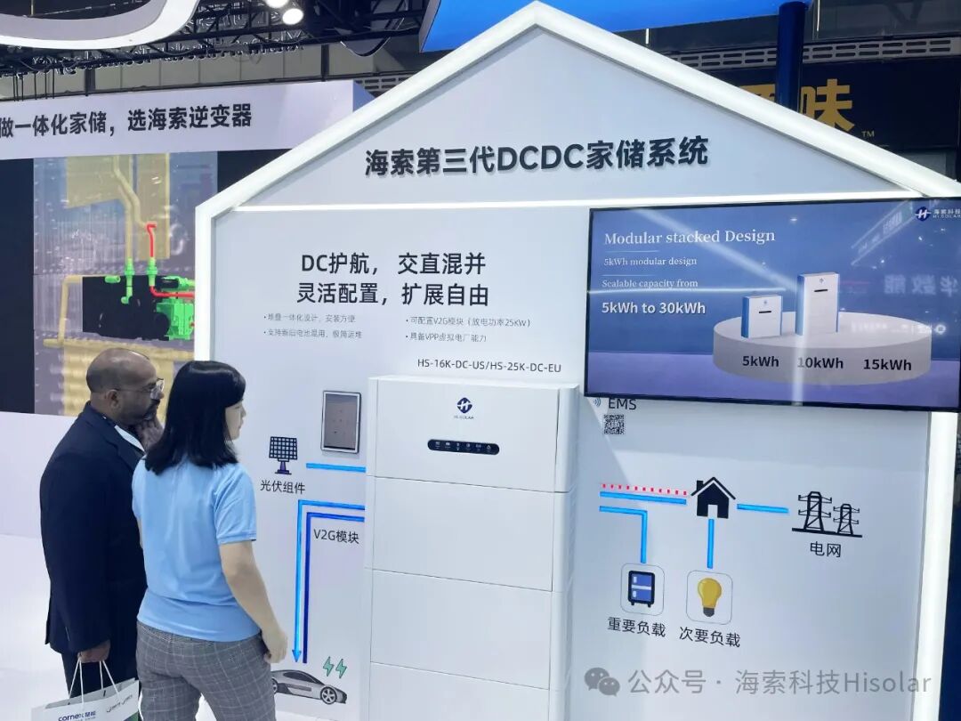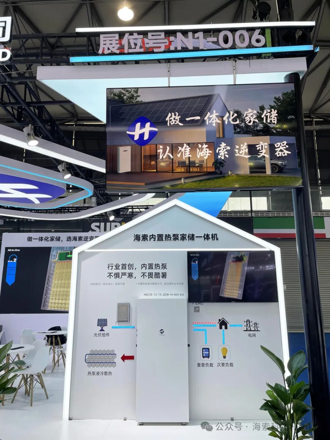第三代DCDC家储系统HS-16K-DC-US/HS-25K-DC-EU系列和内置热泵家储一体逆变器 HS(10-12-15-20)K-H-AIO-EU系列,是海索科技针对户用及家庭储能场景最新开发的两款产品,在展会现场以超高的颜值和卓越的性能,吸引了众多观众的目光。